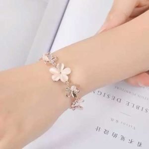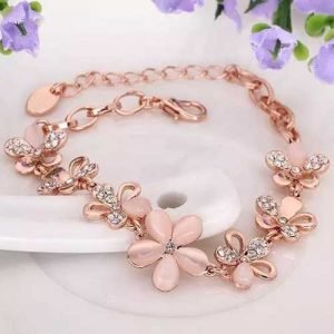 TheVineGirl Fashion Flower Rose Gold Plated Crystal Bracelet for Girls and Women