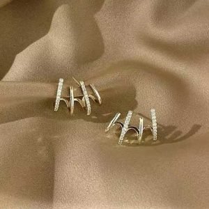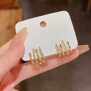 TheVineGirl Korean Gold Plated 4 Earring Effect Claw Stud Earrings For Women And Girls